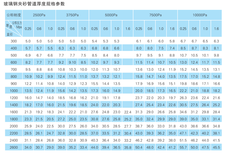 玻璃鋼管管材規格表-宜昌表2